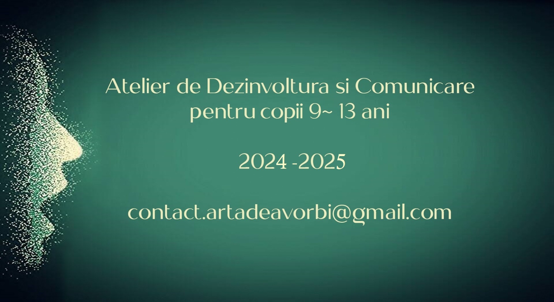 Grupele de copii de 5-8 / 9-14 ani ale Atelierului de Dezinvoltură și Comunicare se desfășoară FIZIC, în fiecare zi de Sâmbătă/Luni.