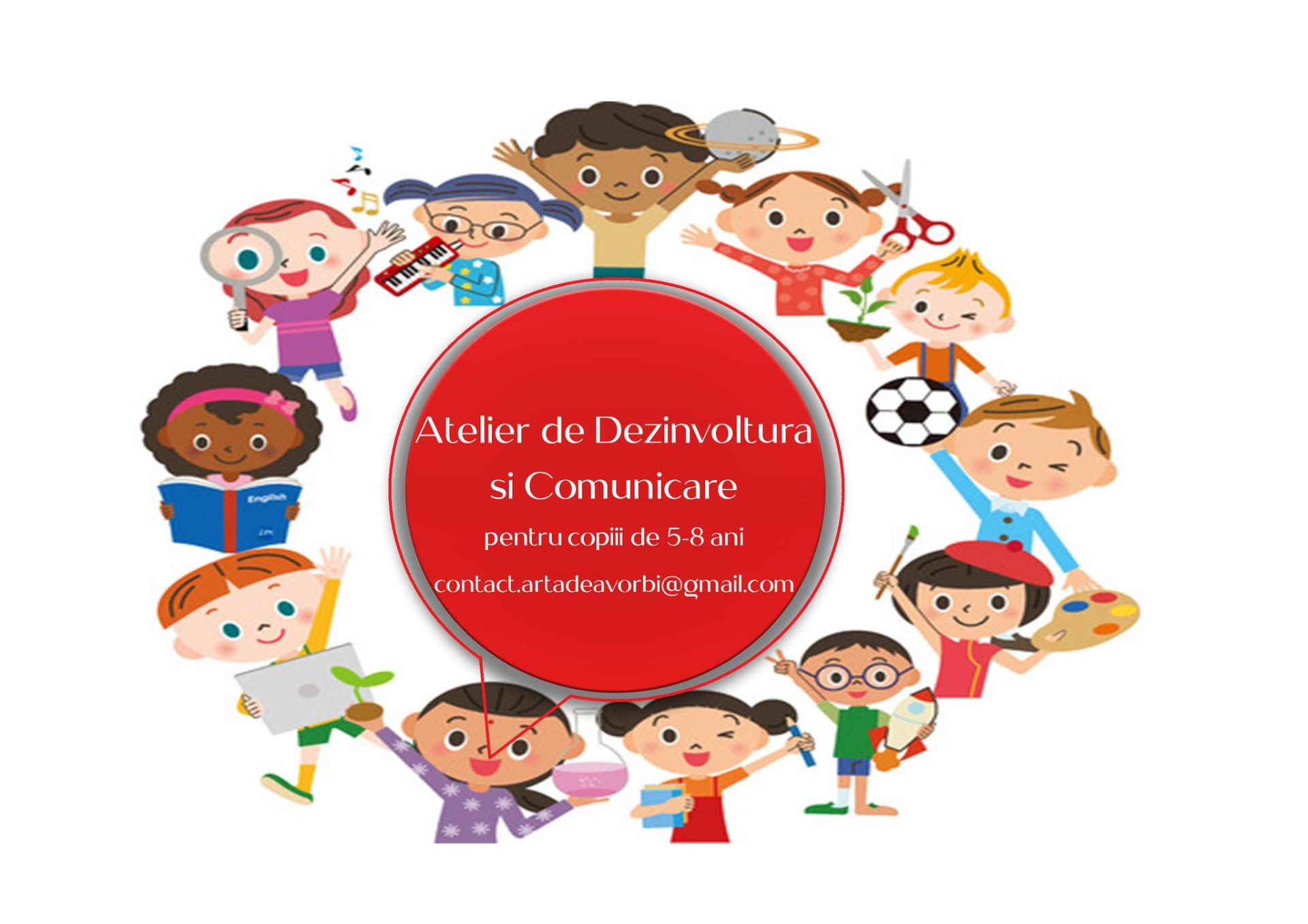 Grupele de copii de 5-8 / 9-14 ani ale Atelierului de Dezinvoltură și Comunicare se desfășoară FIZIC, în fiecare zi de Sâmbătă/Luni.